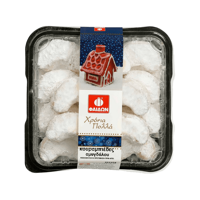 Wenn sich der Duft von Weihnachten mit griechischer Backtradition vereint, entsteht ein wahres Meisterwerk: die FEDON Kourabiedes! Diese herrlich weichen Mandelkekse erinnern an Vanillekipferl, doch mit einem Hauch mehr mediterranem Flair. Jede einzelne Süßigkeit ist gespickt mit feinen Mandelstückchen und bestäubt mit zartem Puderzucker – ein unwiderstehliches Erlebnis für den Gaumen. Ideal zu Kaffee und Tee oder beim gemütlichen Beisammensein am Weihnachtabend!